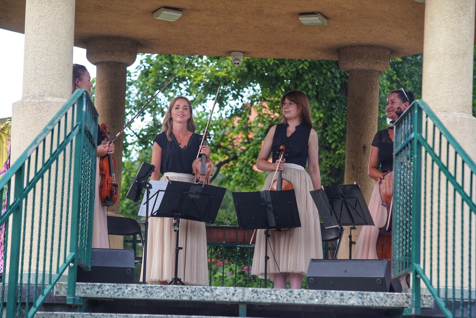W kościółku pw. św. Piotra i Pawła wystąpiło trio strunowe S.A.M. w składzie Sylwia Kamzelska-Bronowicka, Adam i Marek Mikulscy. Muzycy zaprezentowali żarskiej publiczności utwory dawne i współczesne, spięte klamrą o nazwie “Między stru-Nami”. W parku miejskim przy Pawilonie Muzycznym mogliśmy natomiast posłuchać kwartetu smyczkowego Donna Corda Quartet, który zabrał nas w podróż po różnych epokach, stylach i gatunkach muzycznych. Program obu koncertów przedstawiła słuchaczom Magdalena Broniecka, prezentując również sylwetki zaproszonych artystów.